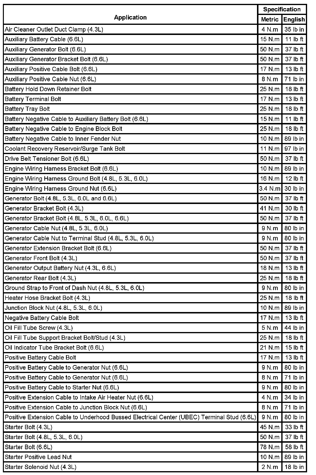Fastener Tightening Specifications