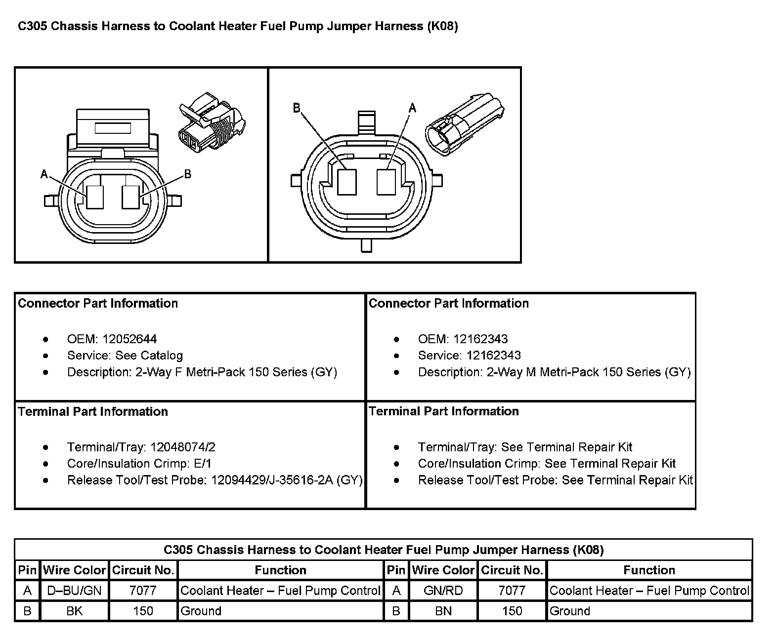 C305 Chassis Harness To Coolant Heater Fuel Pump Jumper Harness (With RPO Code K08):