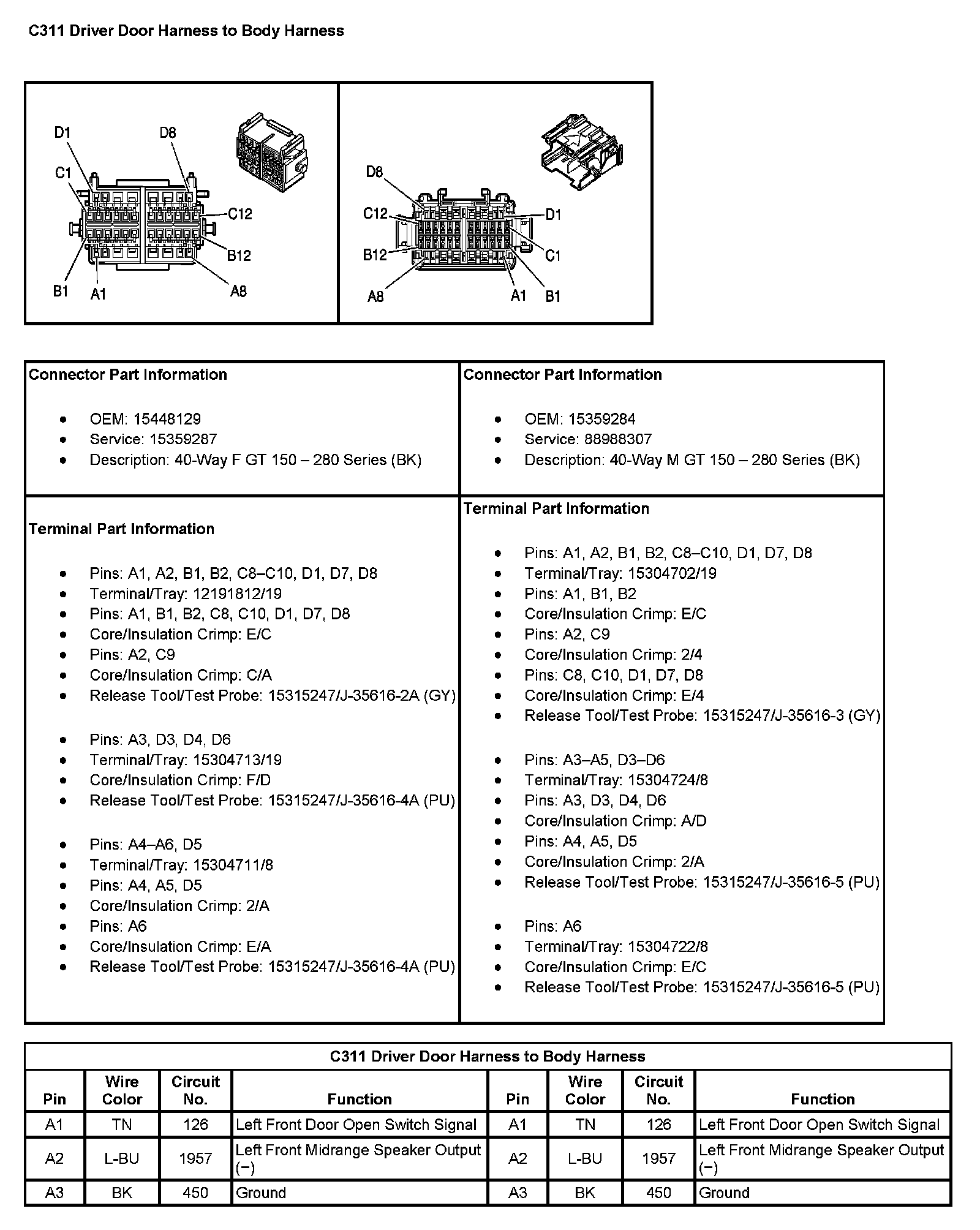 C311 Driver Door Harness To Body Harness (Pin A1 To A3):