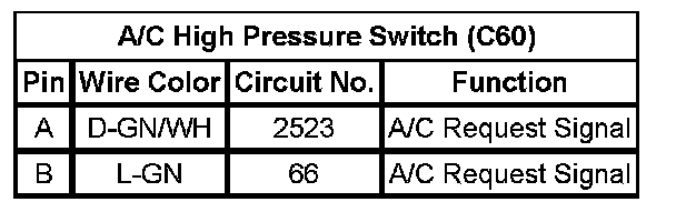 A/C High Pressure Switch (C60)
