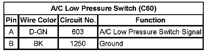 A/C Low Pressure Switch (C60)