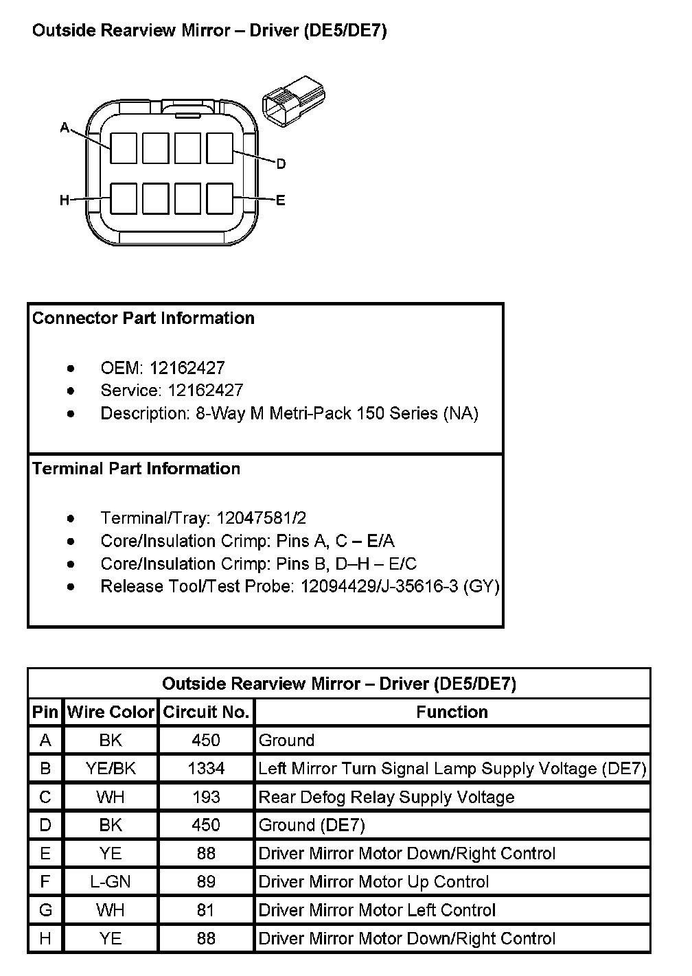 Outside Rearview Mirror - Driver (With RPO Codes DE5/DE7):