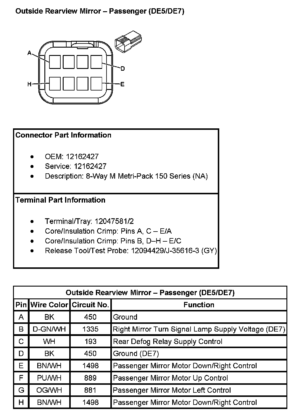 Outside Rearview Mirror - Passenger (With RPO Codes DE5/DE7):