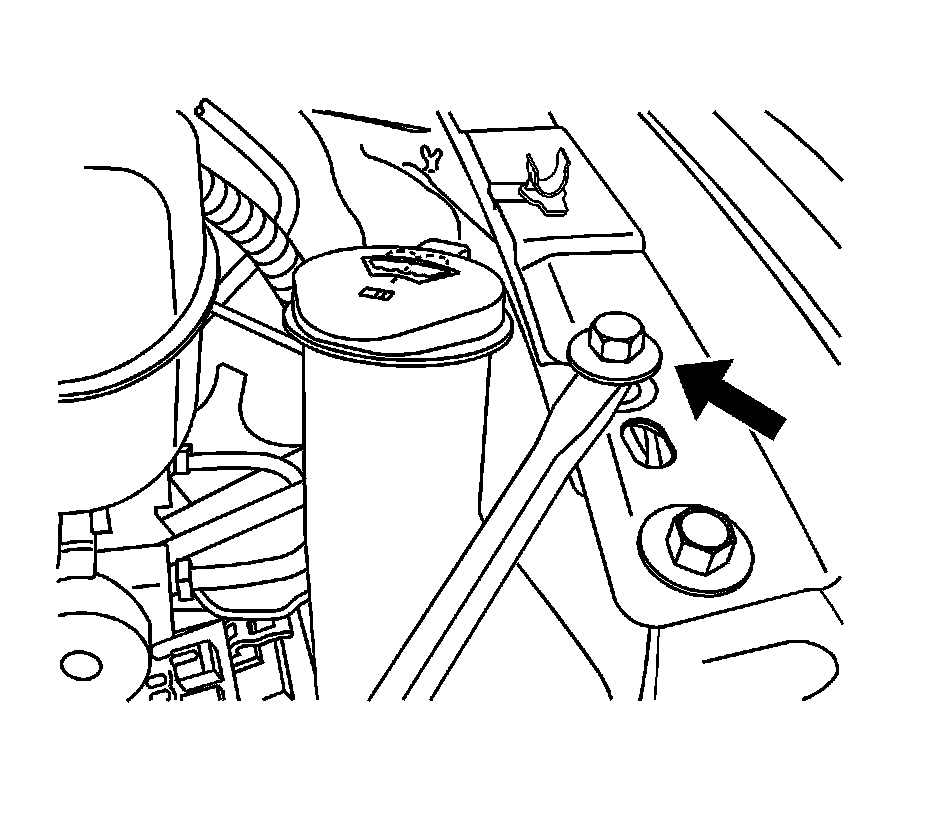 8. Position the LH fender to core support brace and install the bolts.