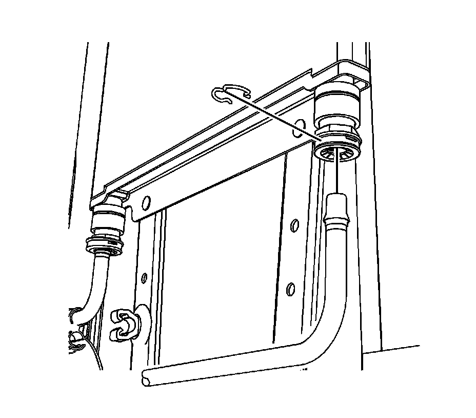 17. Position the upper transmission cooler line to the radiator and install the retaining clip.