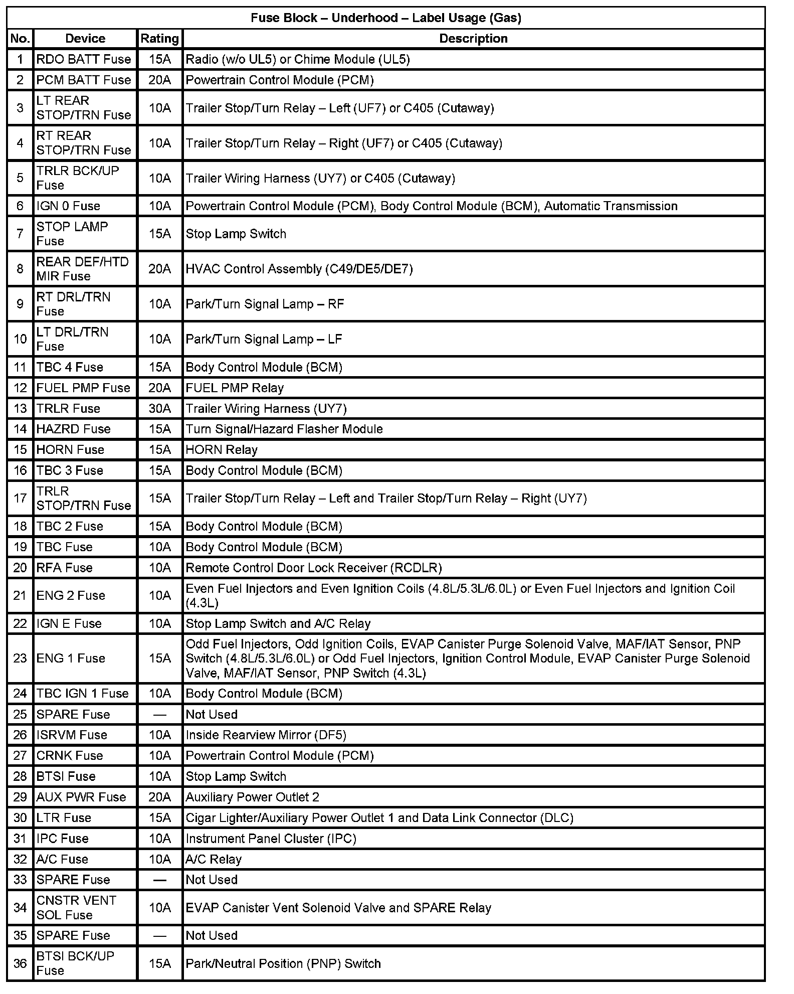 Fuse Block - Underhood - Label Usage (Gas) (Part 1):