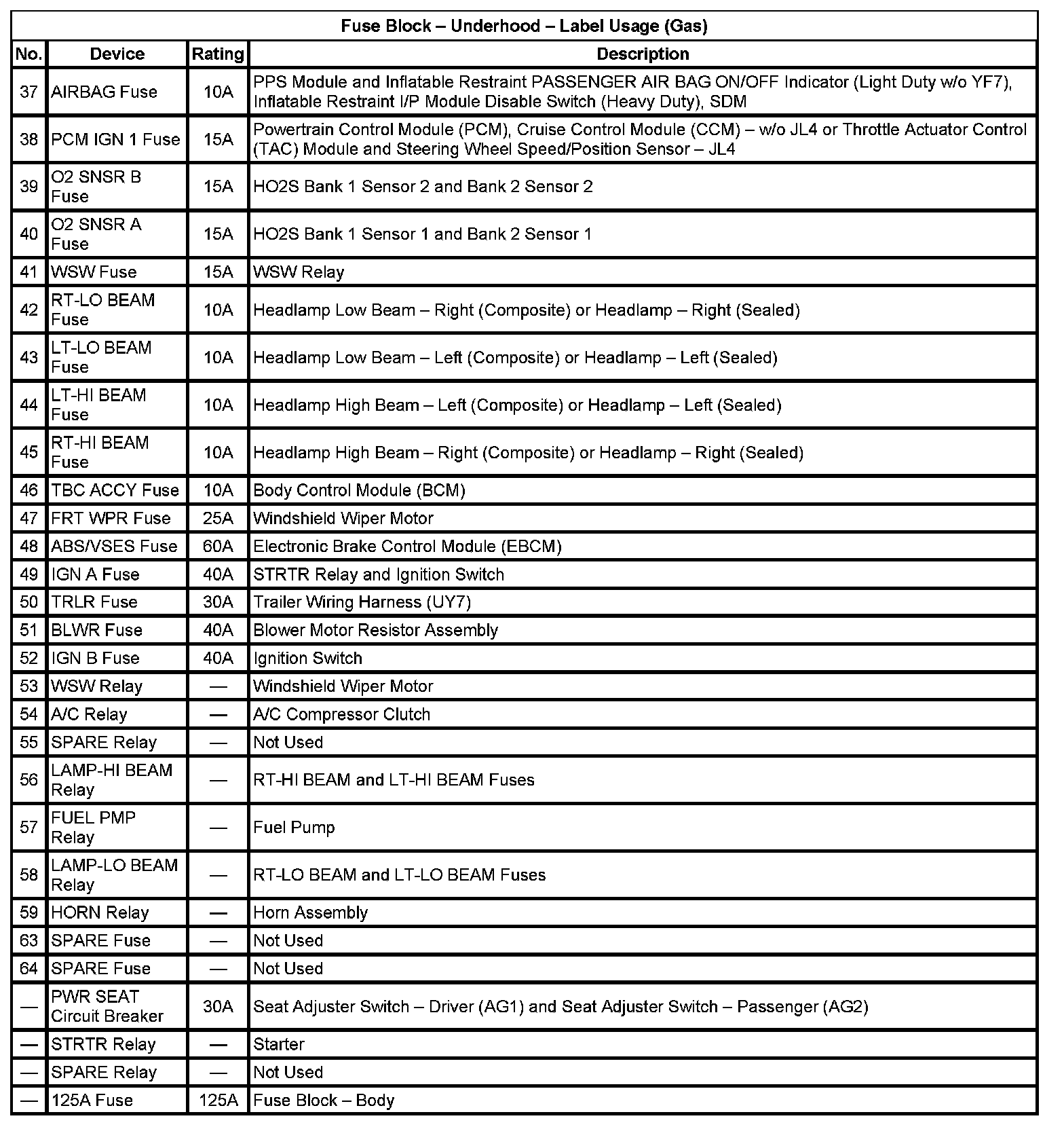 Fuse Block - Underhood - Label Usage (Gas) (Part 2):
