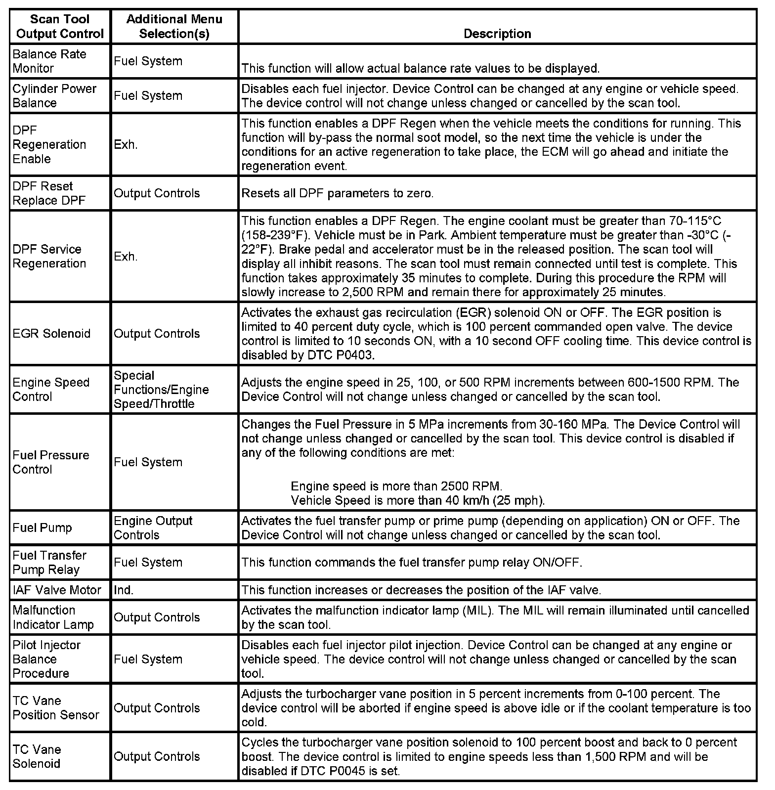 Scan Tool Output Controls