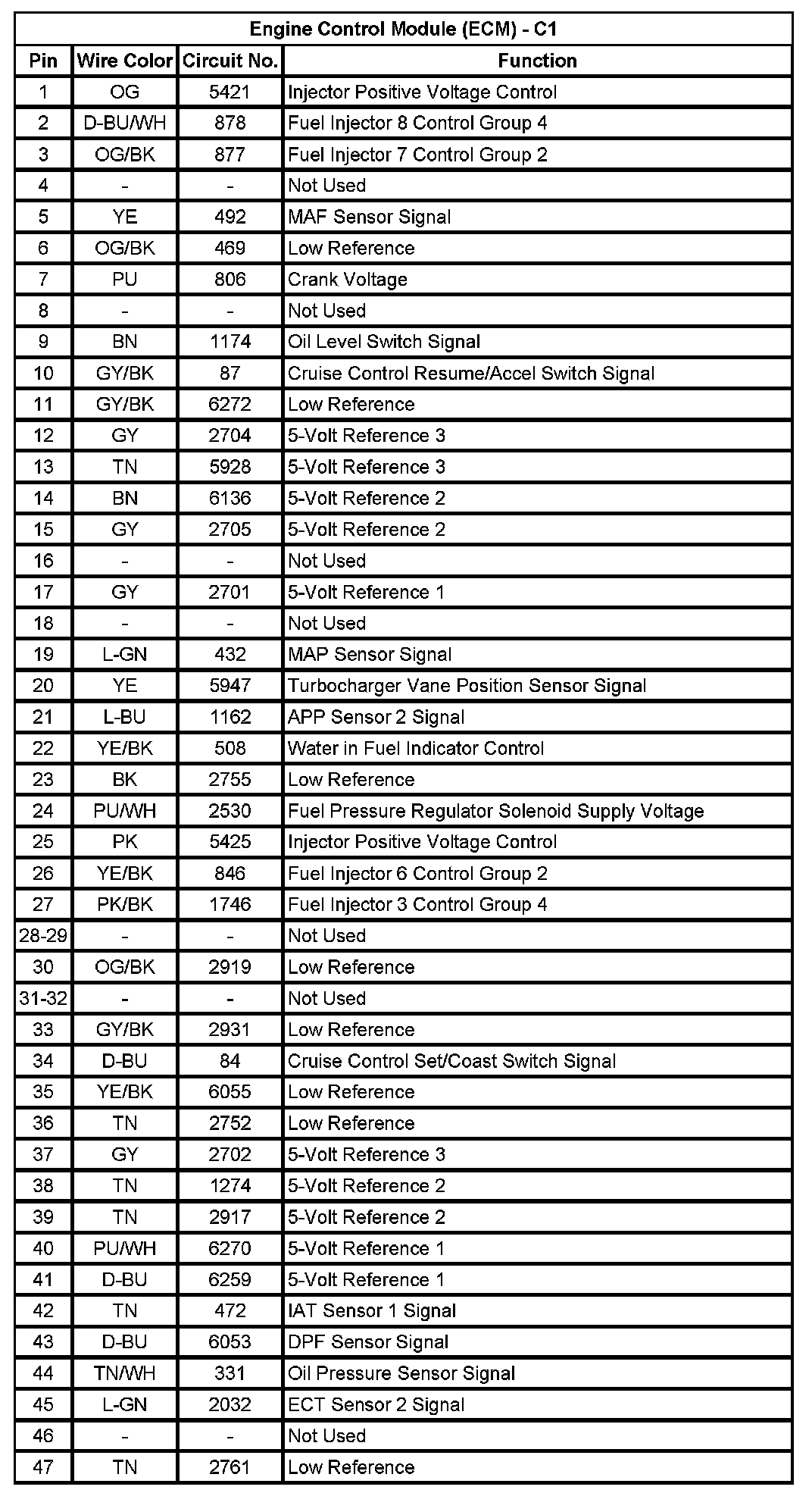 Engine Control Module (ECM) - C1 (Pin 1 To 47):