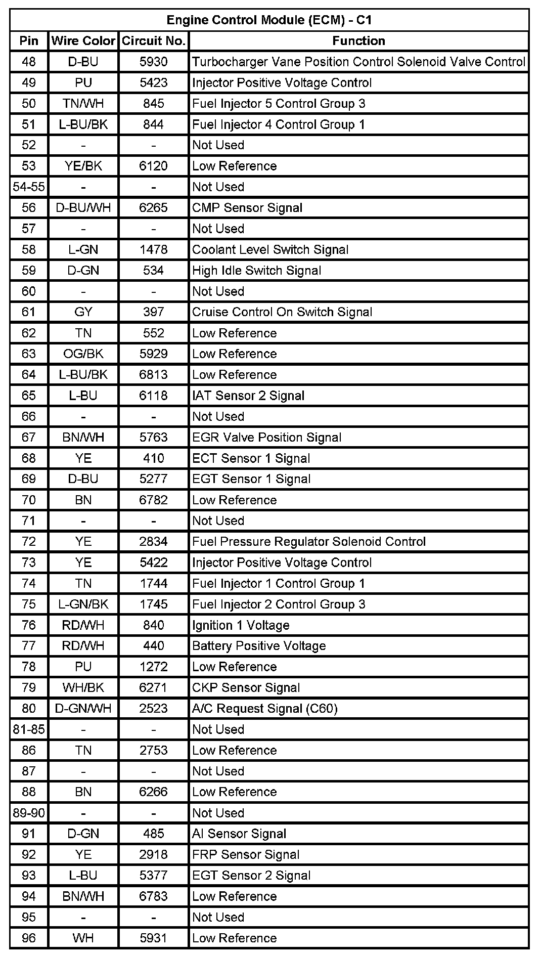 Engine Control Module (ECM) - C1 (Pin 48 To 96):