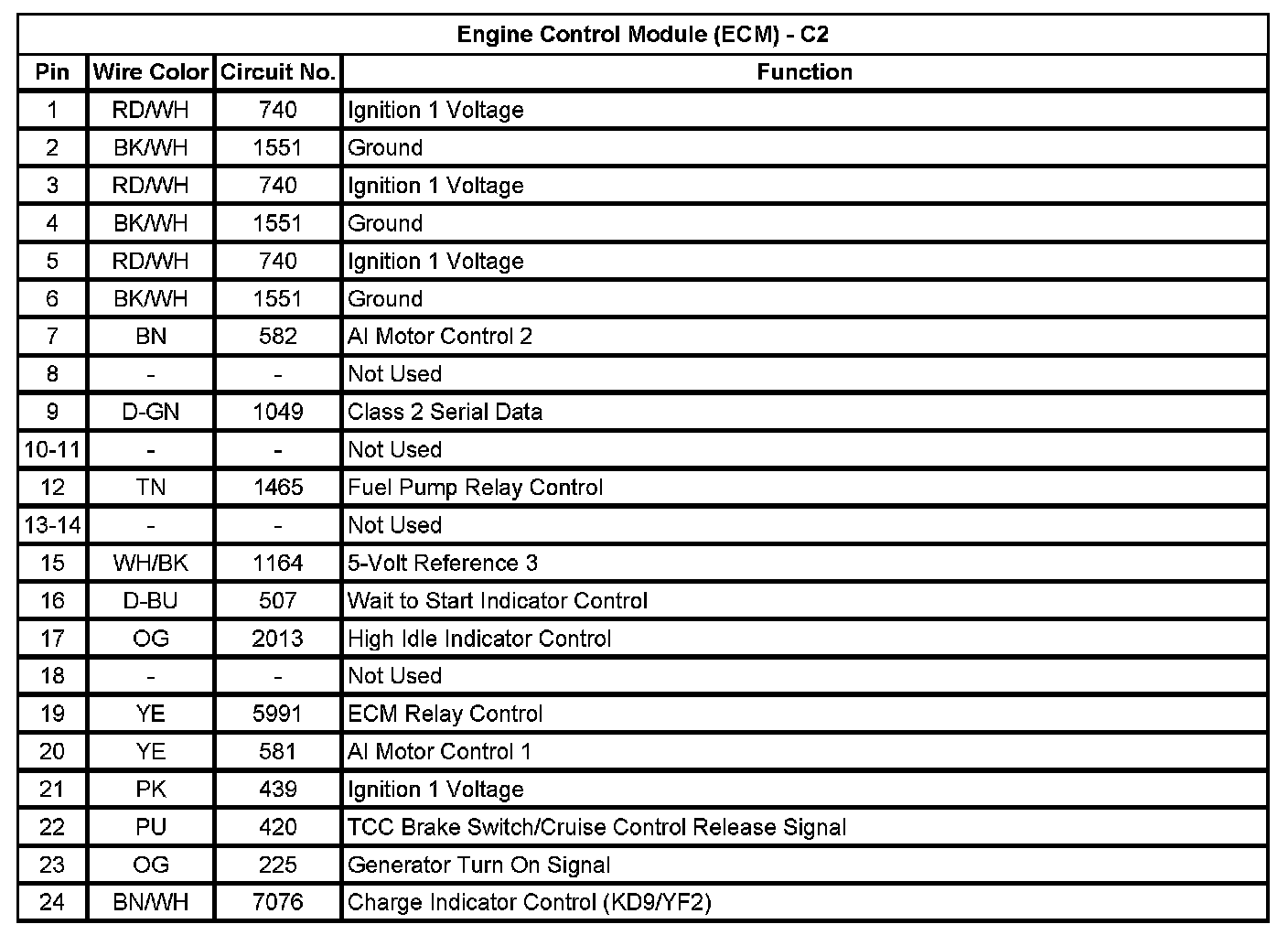 Engine Control Module (ECM) - C2 (Pin 1 To 24):