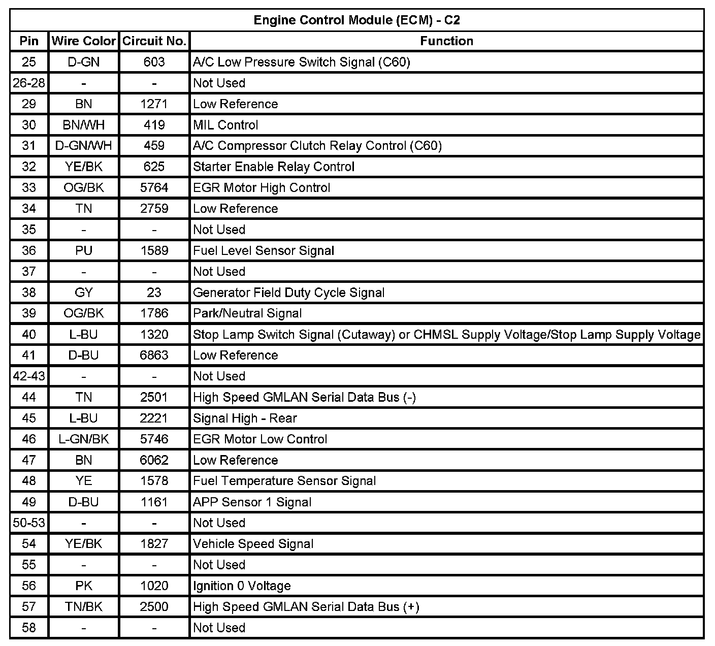 Engine Control Module (ECM) - C2 (Pin 25 To 58):