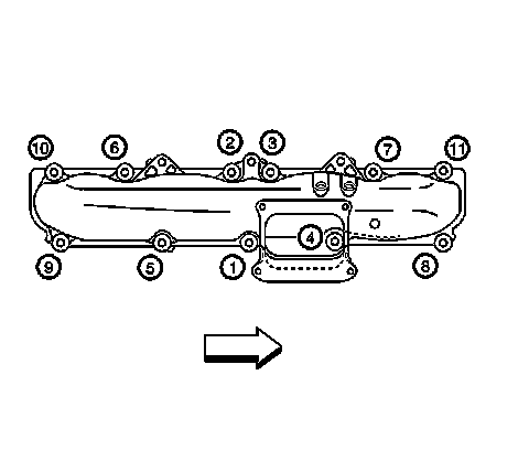 Tighten the intake manifold bolts/nuts in the sequence shown to 25 N.m (18 lb ft).