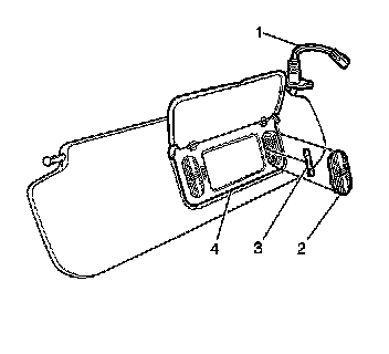 1. Gently pry out the lens (2) of the vanity mirror assembly (4) with a suitable flat-bladed tool.