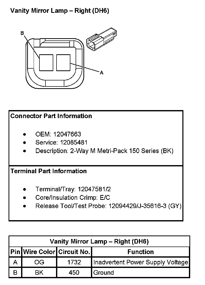 Vanity Mirror Lamp - Right (With RPO Code DH6):