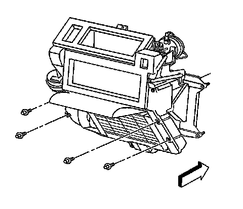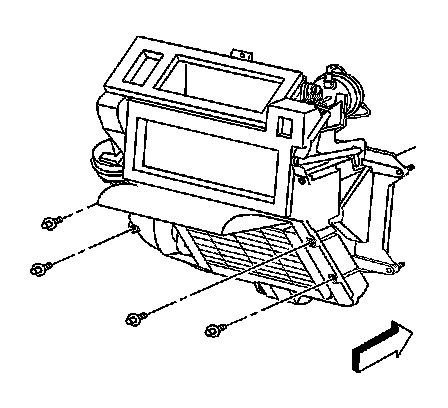 4. Install the heater core access door retaining screws. Tighten the screws to 1.9 Nm (17 lb in).
