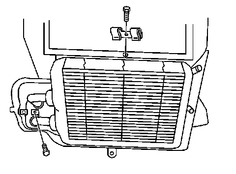 2. Install the heater core retainers. Tighten the screws to 1.9 Nm (17 lb in).