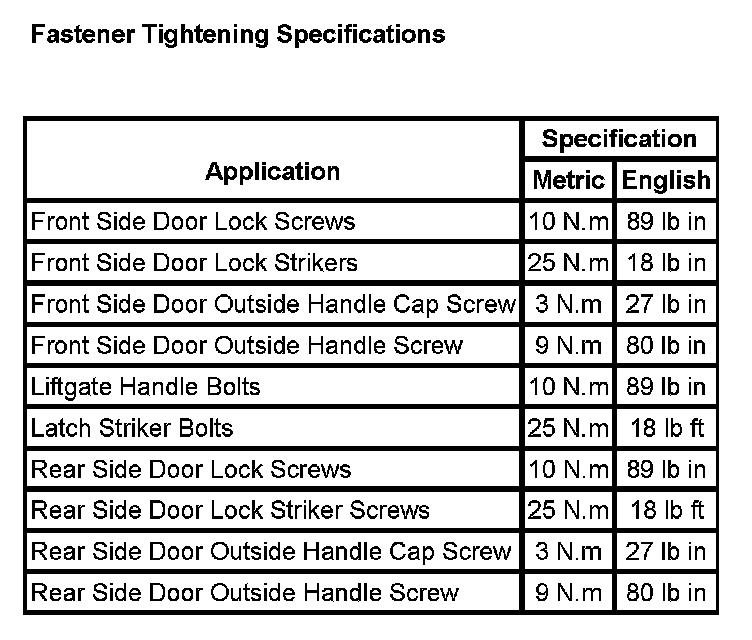 Fastener Tightening Specifications: