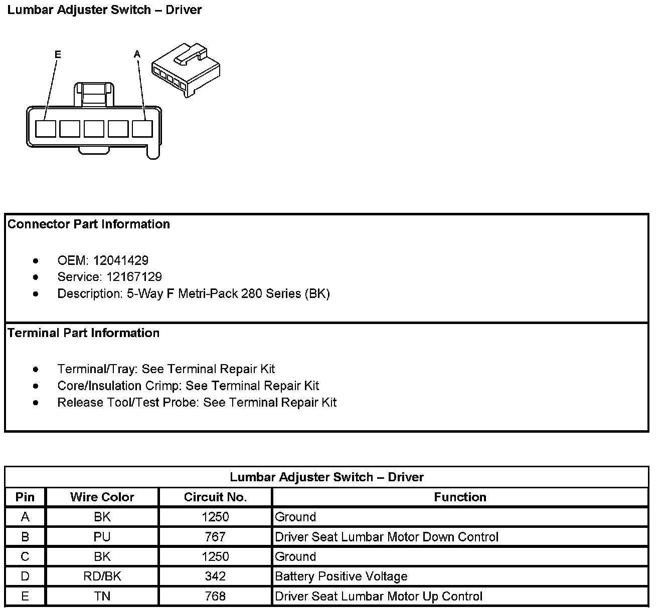 Lumbar Adjuster Switch - Driver: