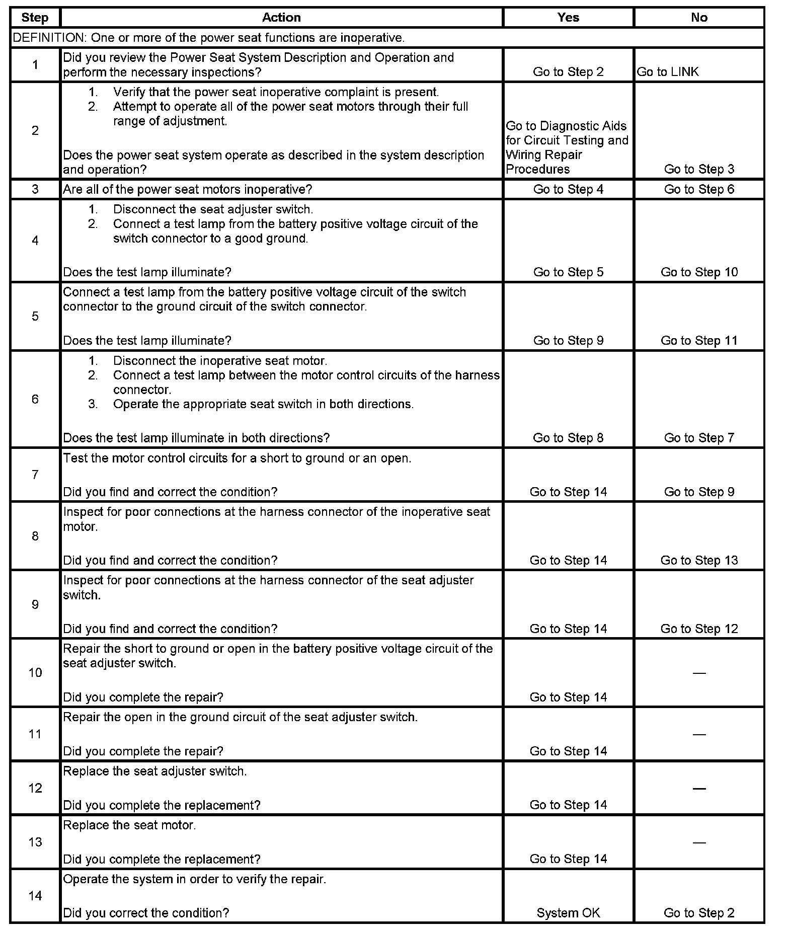 Power Seat Inoperative