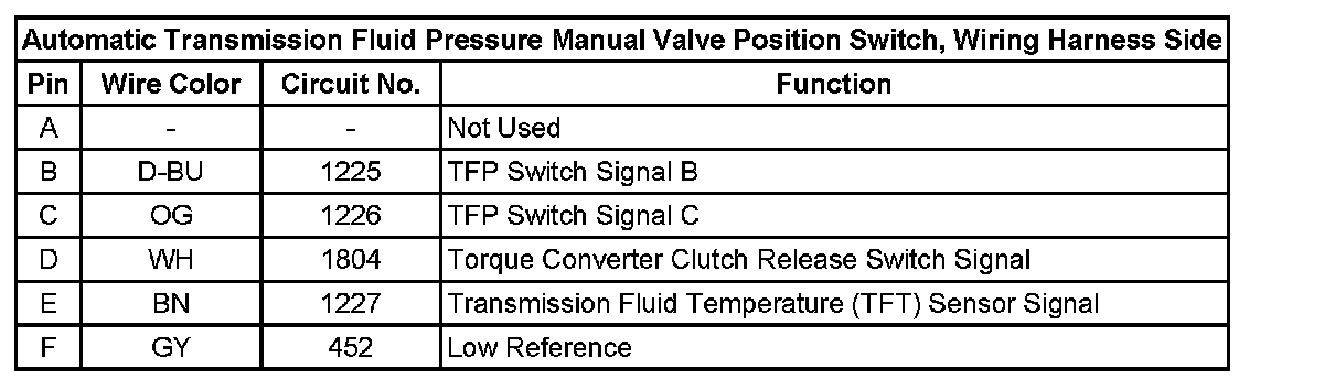 Automatic Transmission Fluid Pressure Manual Valve Position Switch, Wiring Harness Side: