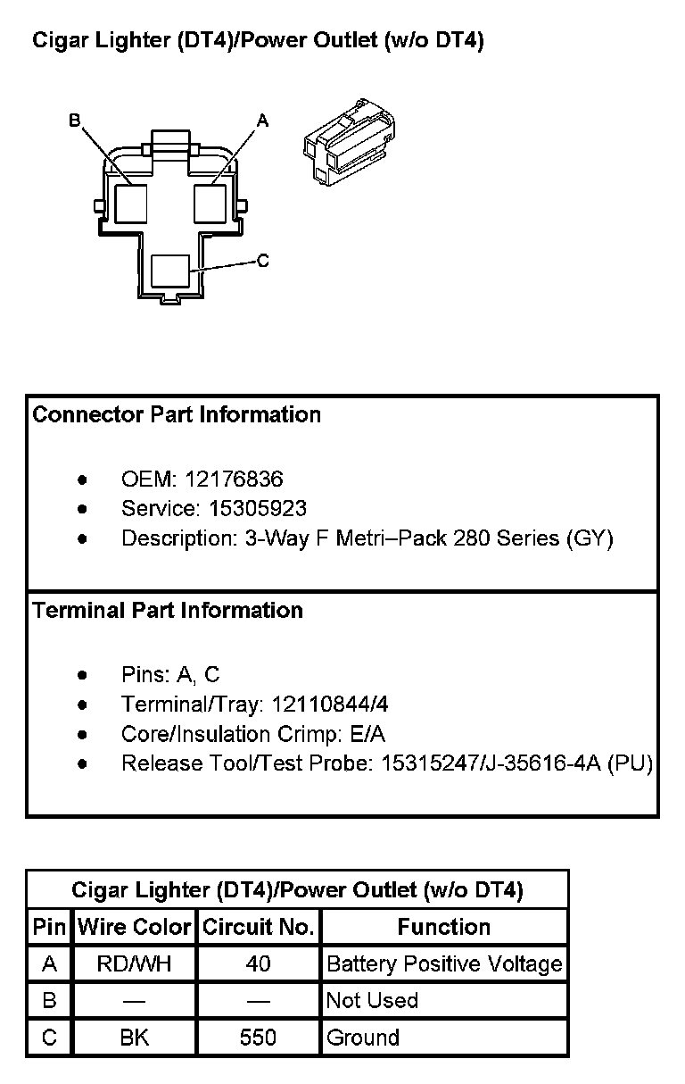 Cigar Lighter (DT4)/Power Outlet (Without RPO Code DT4):