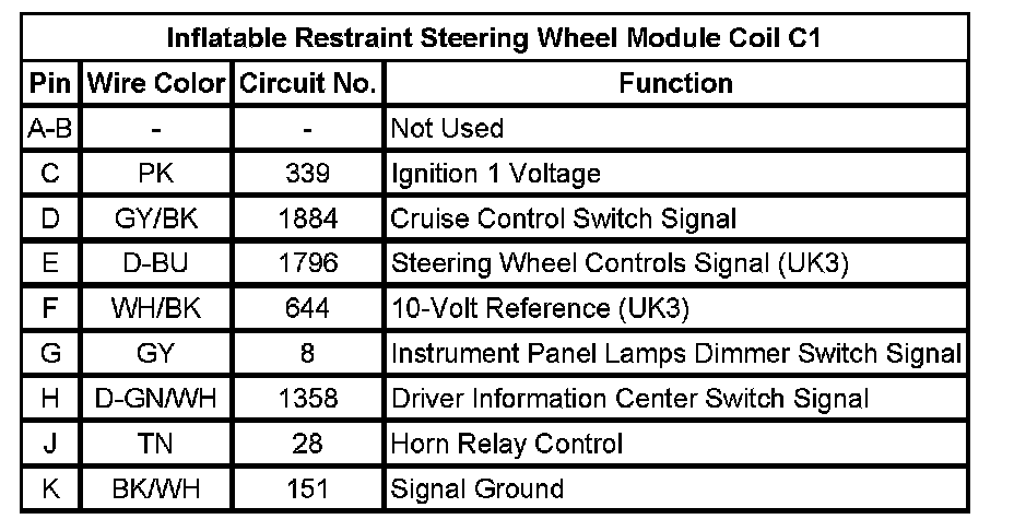 Inflatable Restraint Steering Wheel Module Coil C3