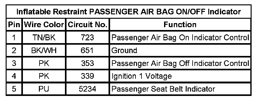 Inflatable Restraint PASSENGER AIR BAG ON/OFF Indicator