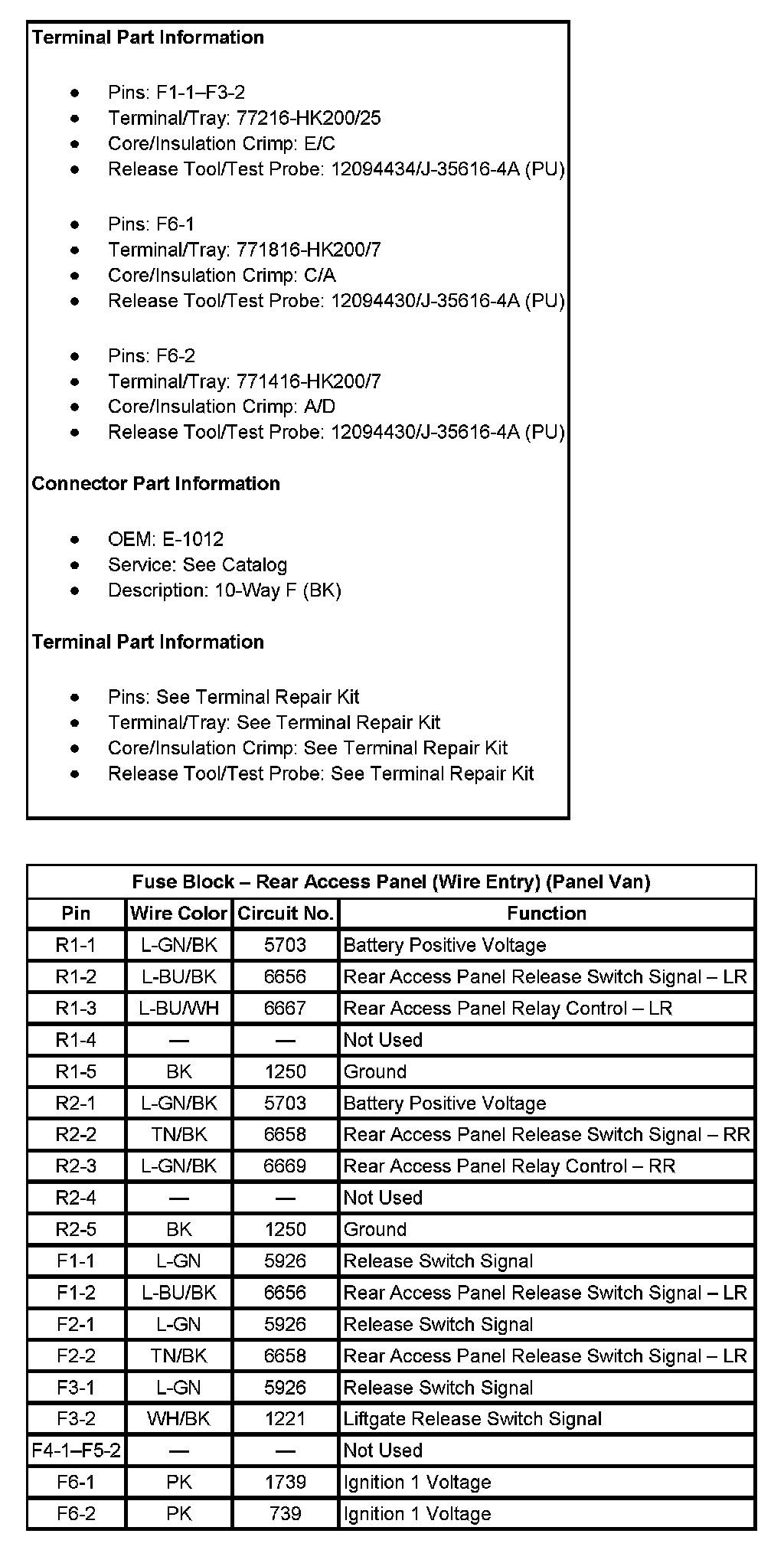 Fuse Block - Rear Access Panel (Wire Entry) (Panel Van) (Pin R1-1 To F6-2):