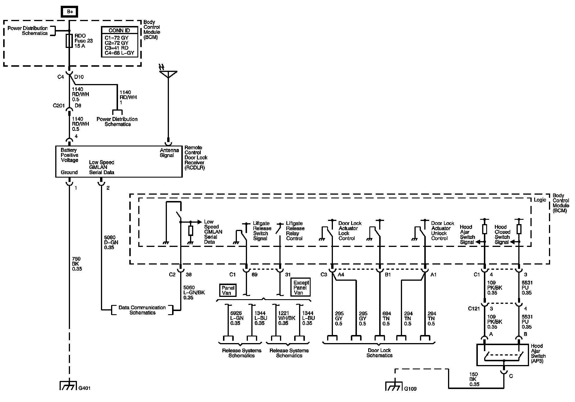 The locations for the Connectors, Grounds, Splices, and Grommets shown within these diagrams can be found via their numbers at Vehicle Locations.