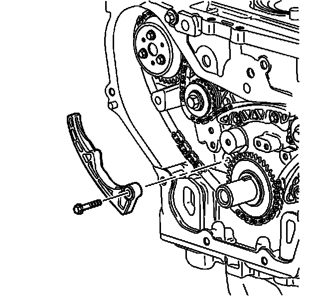Important: The timing chain tensioner must be removed to unload chain tension before the timing chain is removed. If not removed, the timing chain will become cocked and it will be difficult to remove.