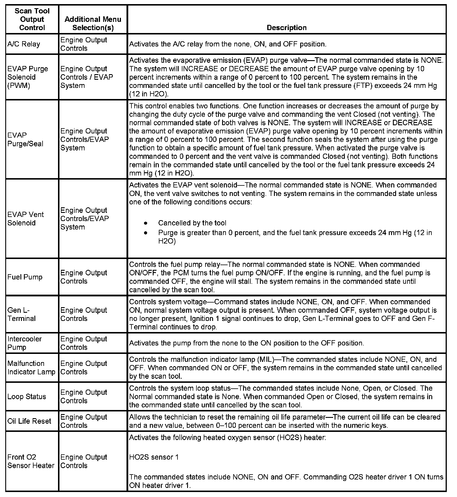 Scan Tool Output Controls