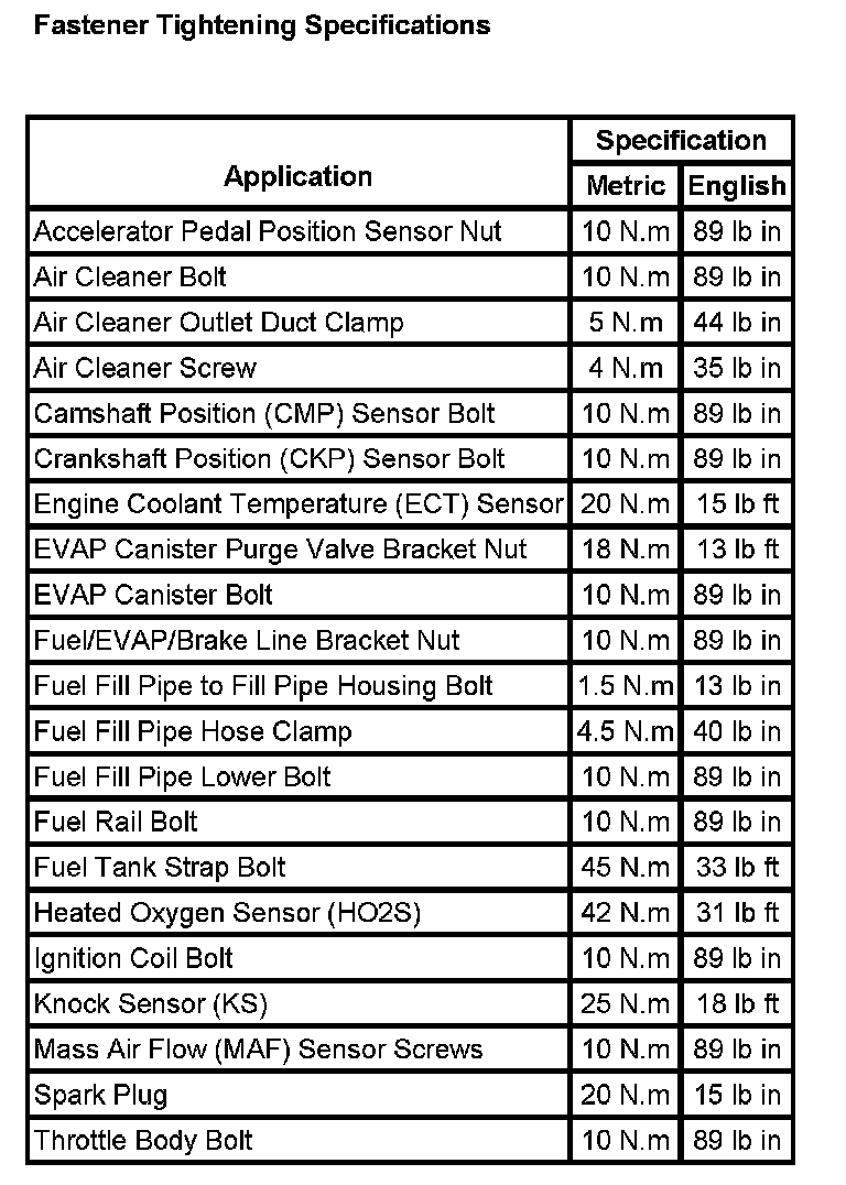 Fastener Tightening Specifications: