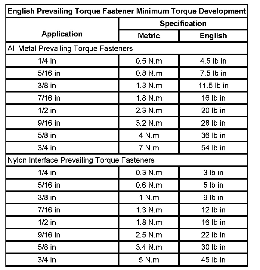 Prevailing Torque Fasteners