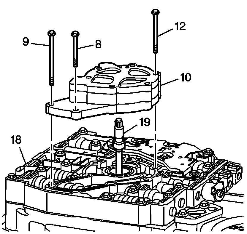 Install the eight oil pump bolts (8, 9, 12). Hand start the bolts.