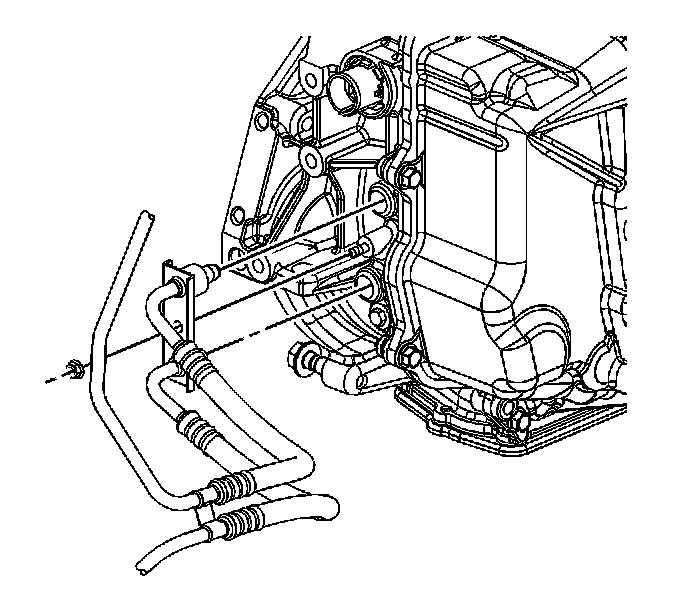 7. Connect the transaxle cooler pipes to the transaxle and install the retaining nut.