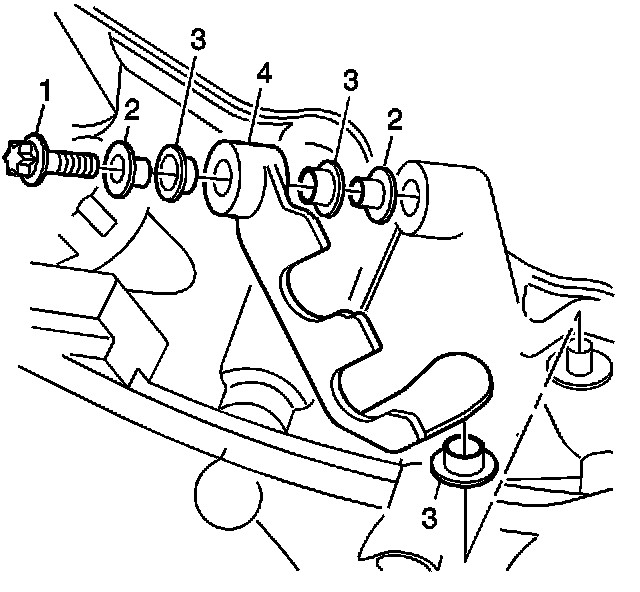 3. Remove the shift cable bracket (4), the spacers (2), the isolators (3) and the bolt (1).