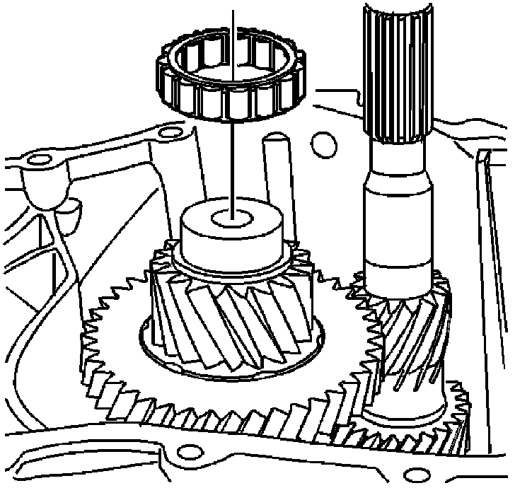 37. Remove the intermediate shaft and shift fork from the input shaft, the output shaft, and the J 44375.