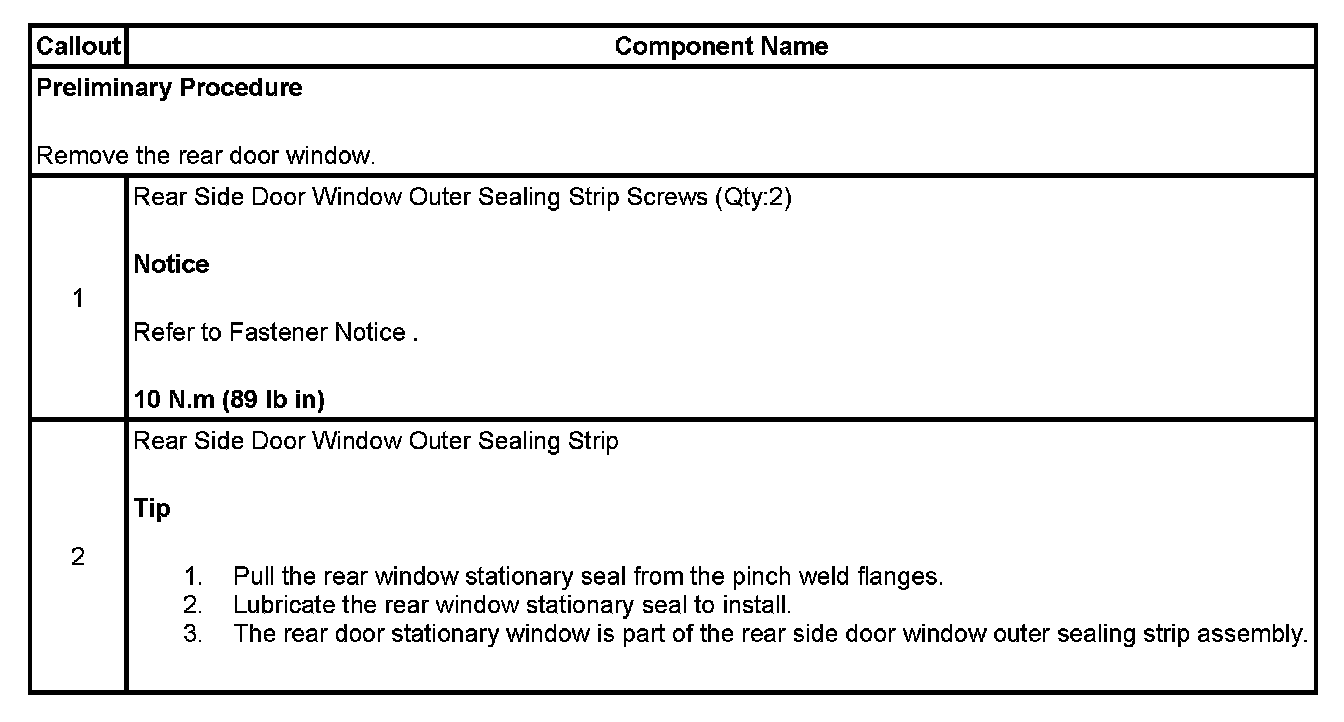 REAR SIDE DOOR STATIONARY WINDOW REPLACEMENT