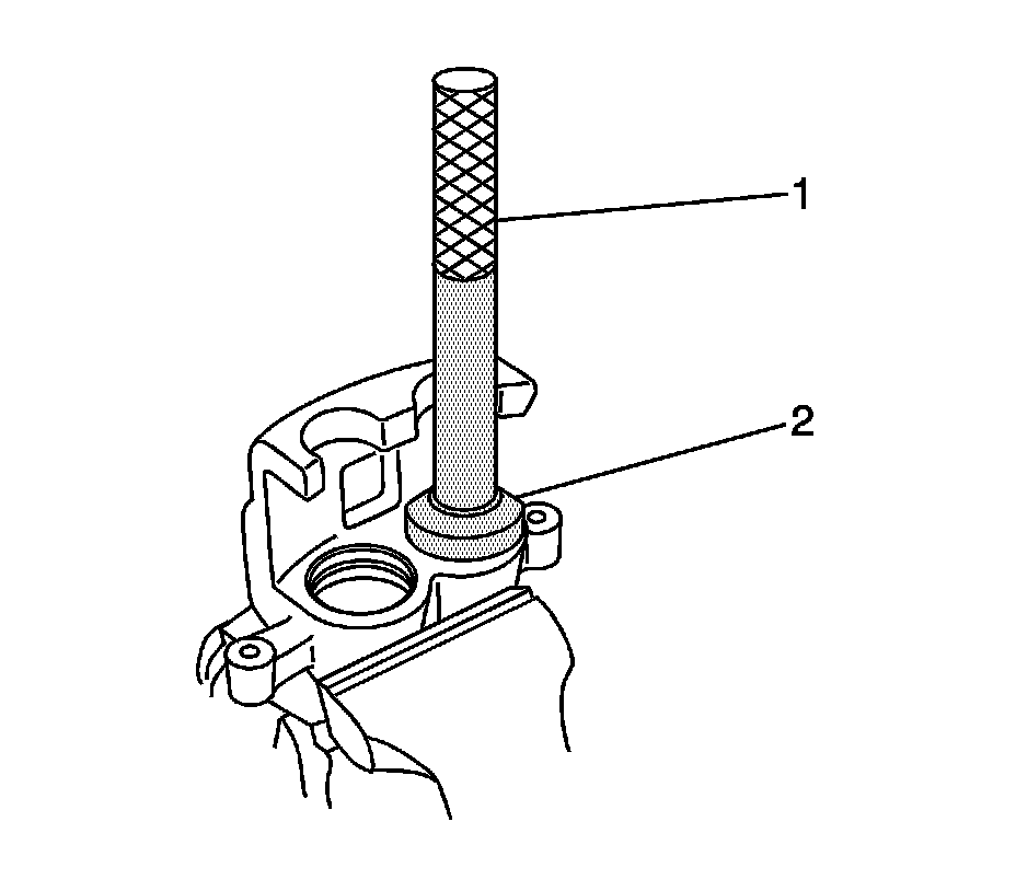 8. Using the J 8092 (1) and the J 45863 (2), install the piston dust seal in the brake caliper.