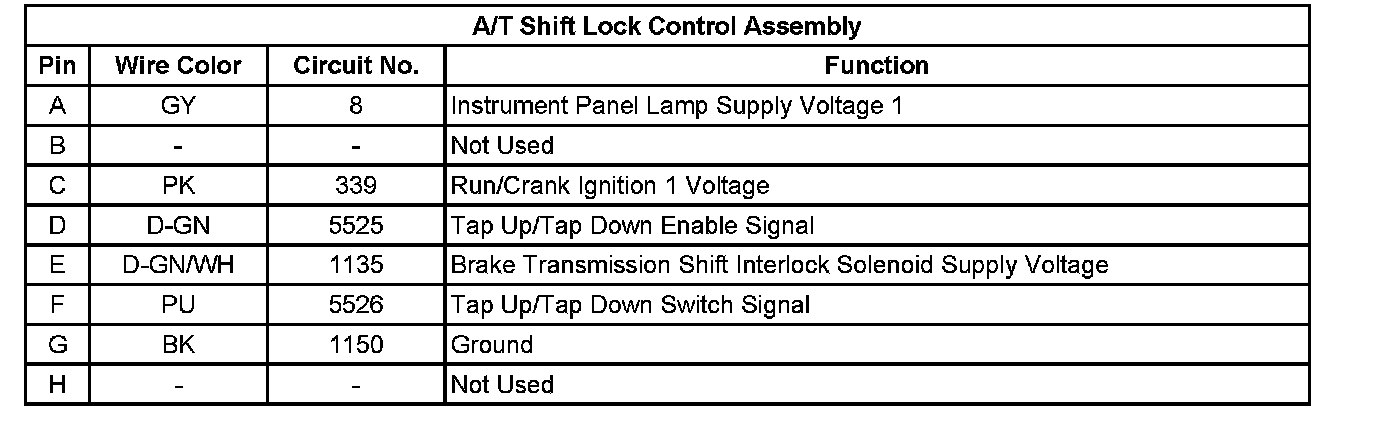 A/T Shift Lock Control Assembly: