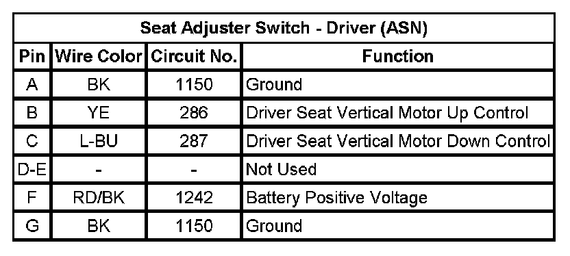 Seat Adjuster Switch - Driver (ASN)