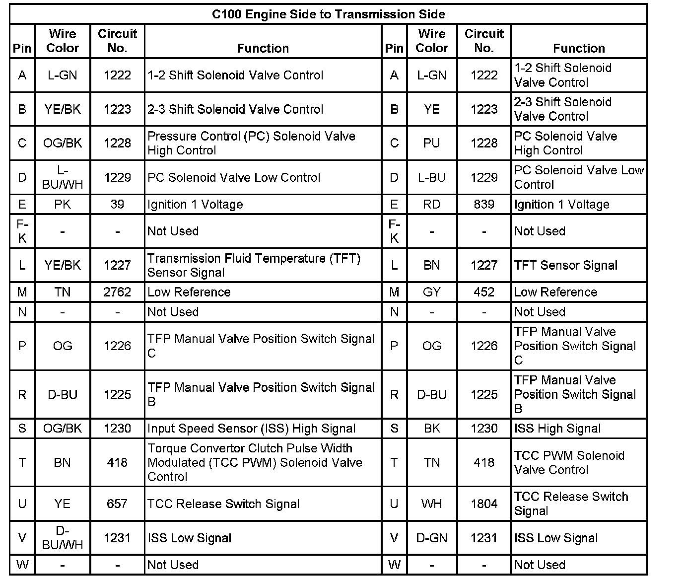 C100 Engine Side to Transmission Side: