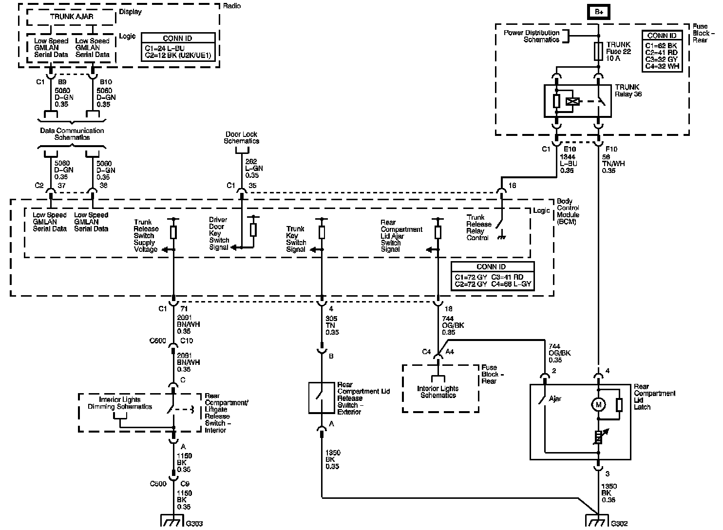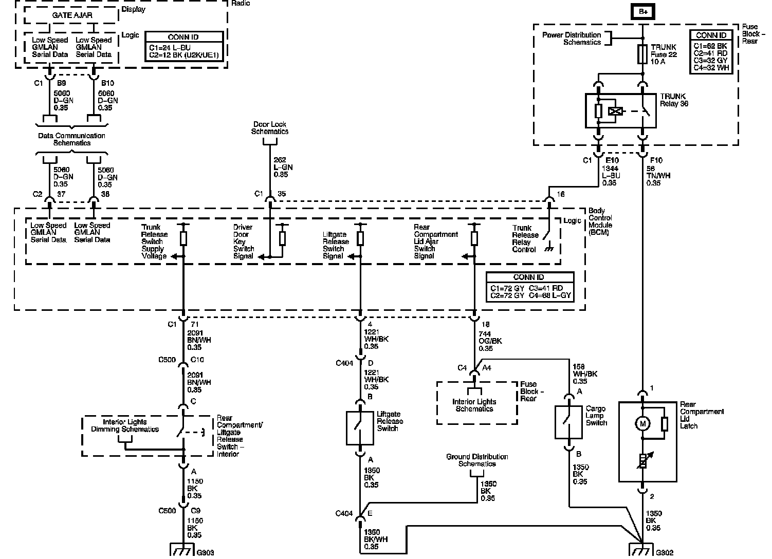 The locations for the Connectors, Grounds, Splices, and Grommets shown within these diagrams can be found via their numbers at Vehicle Locations.