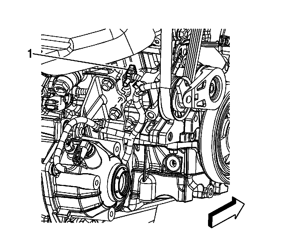19. Remove the engine wiring harness clip (1) from the transaxle bracket.