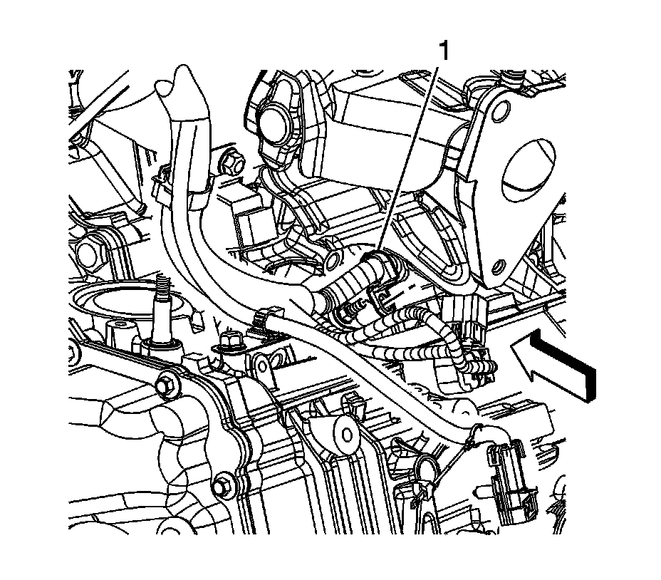36. Disconnect the engine wiring harness electrical connector (1) from the evaporative emission (EVAP) canister purge solenoid.