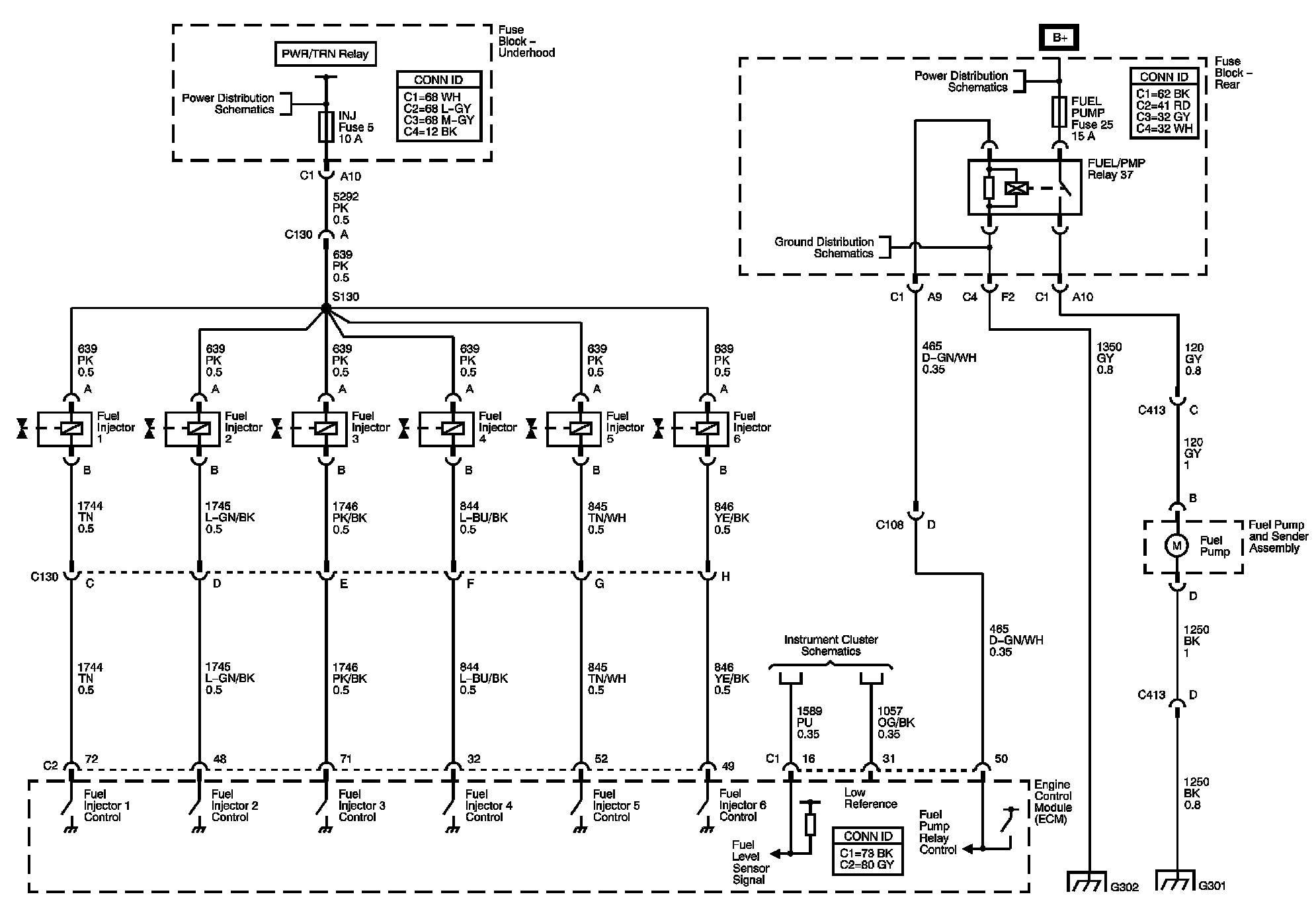 Locations: The locations for the Connectors, Grounds, Splices, and Grommets shown within these diagrams can be found via their numbers at Vehicle Locations. Locations