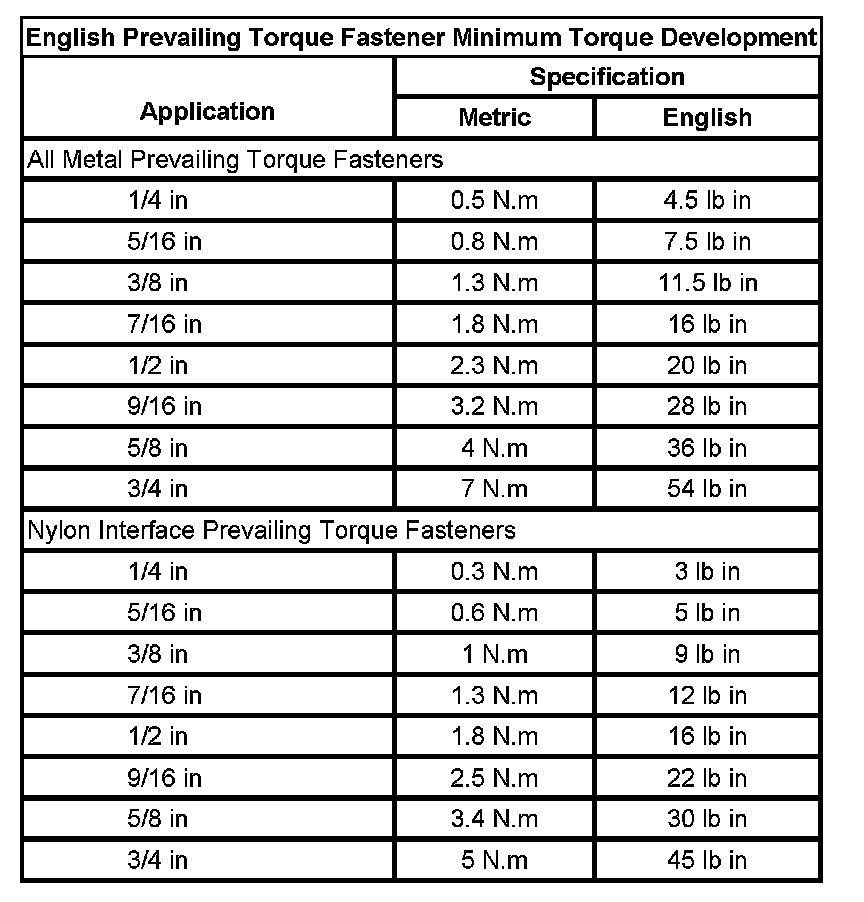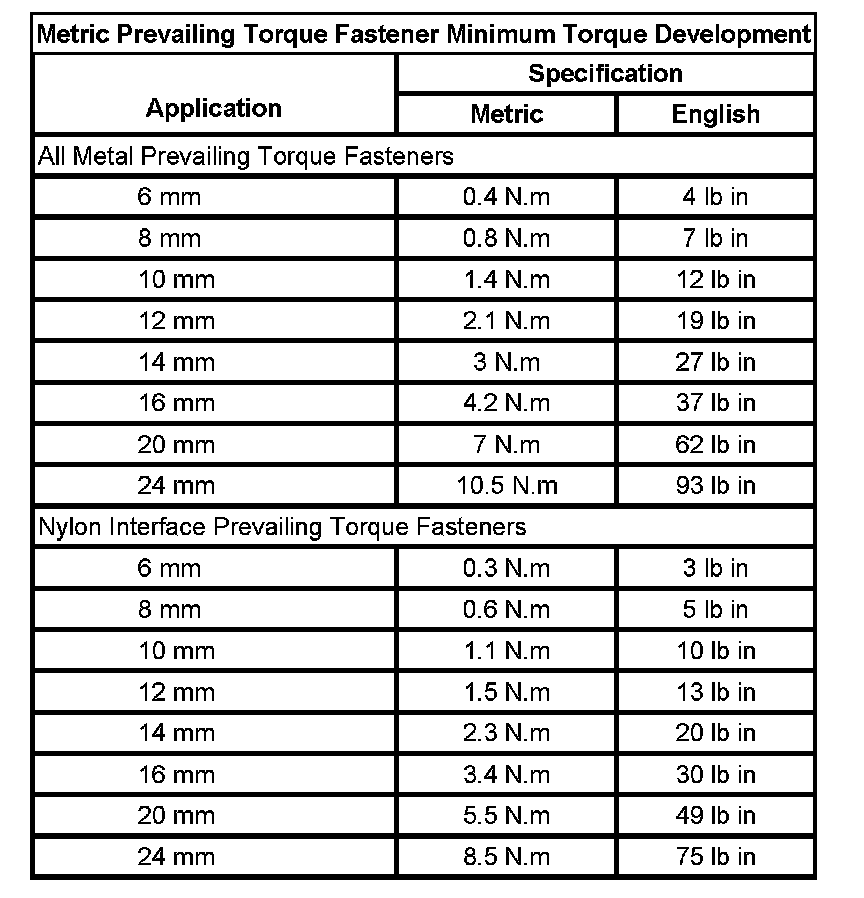 Prevailing Torque Fasteners
