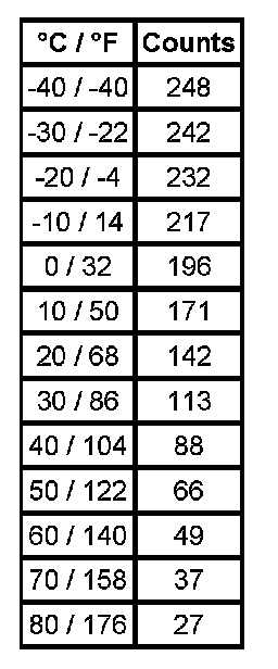Sensor Resistance Table (Duct Temp conversion temp to counts)