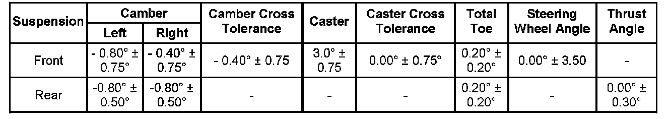 Wheel Alignment Specifications